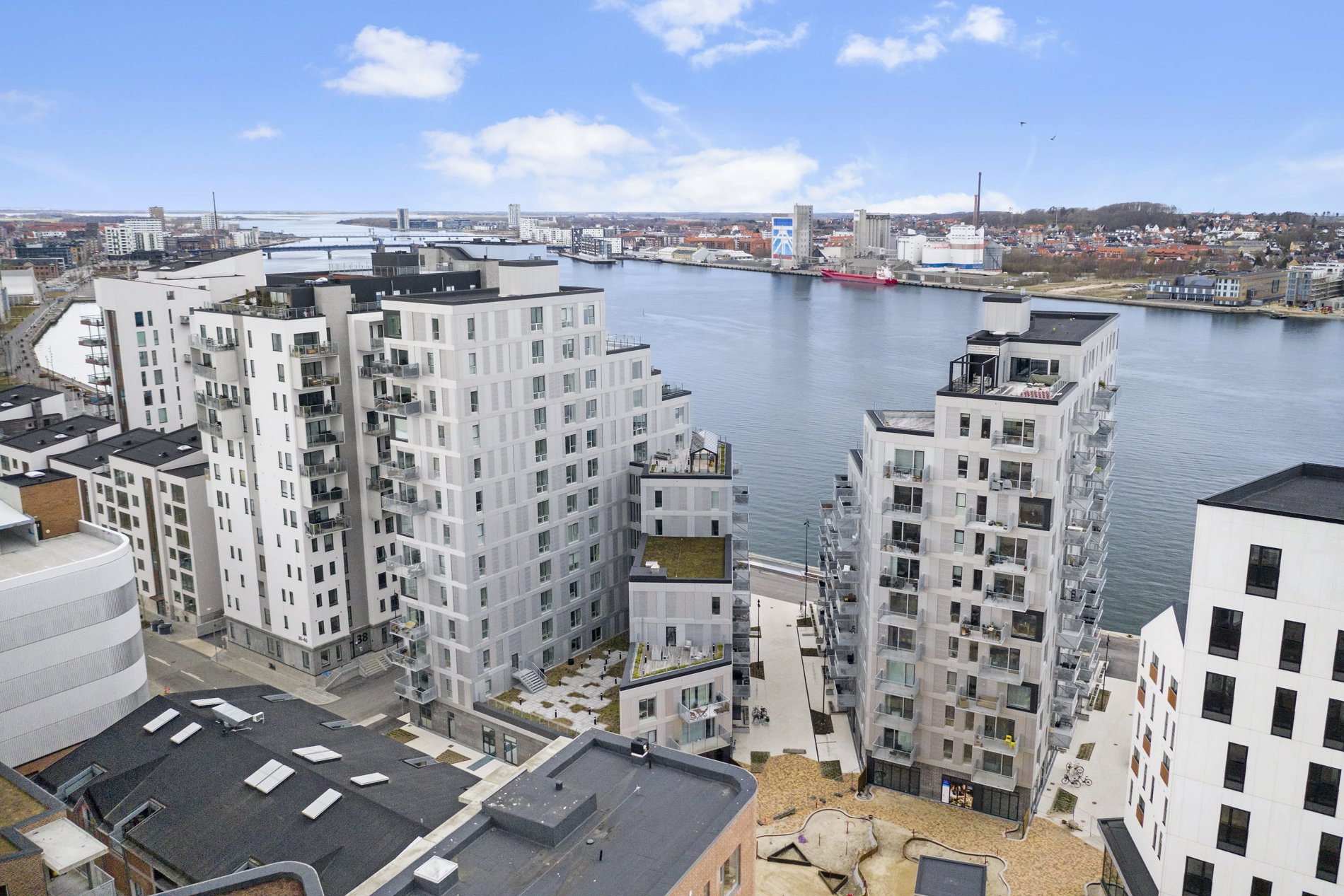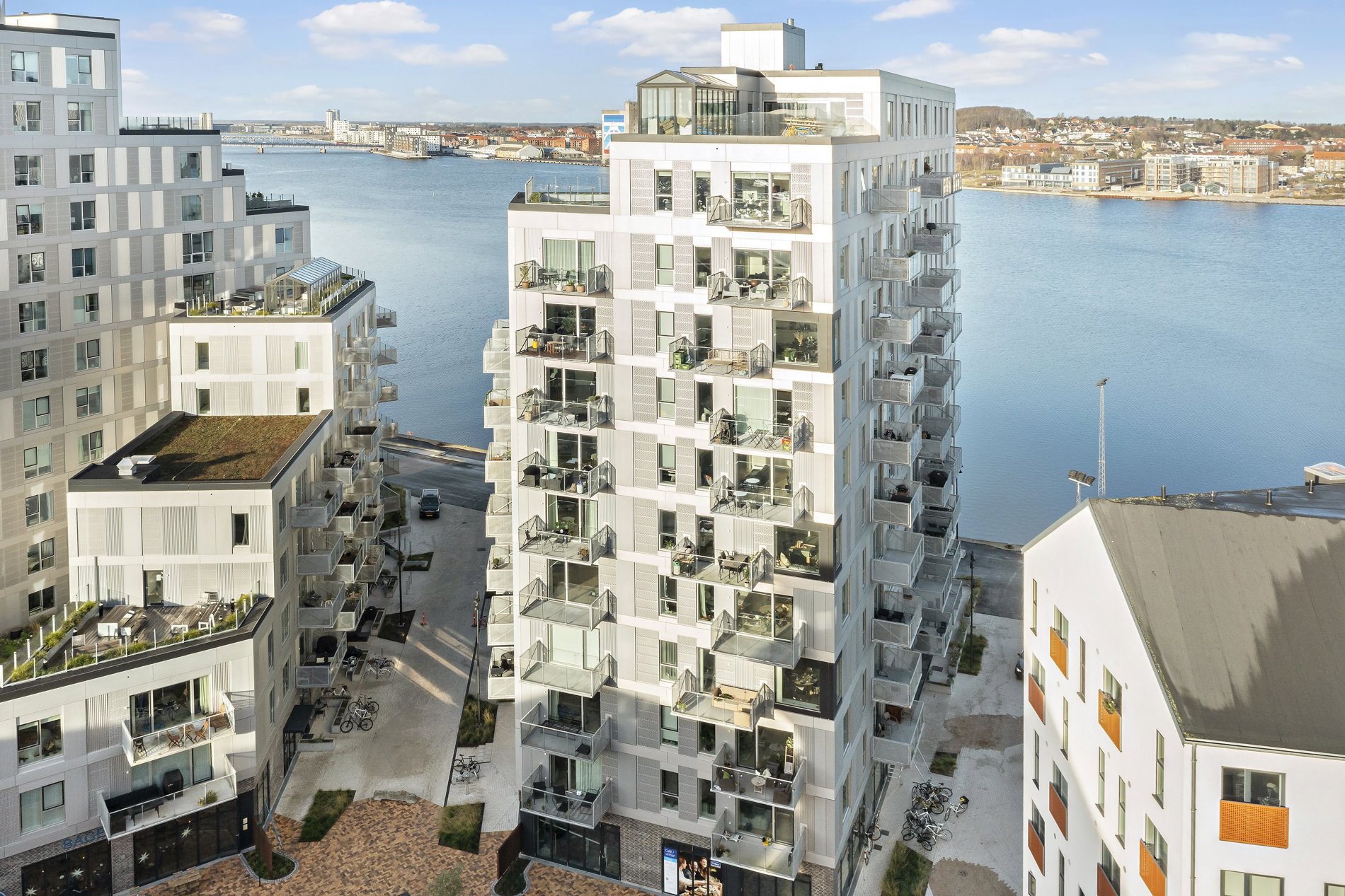 - Flere fælles tagterrasser med udsigt over byen og fjorden
