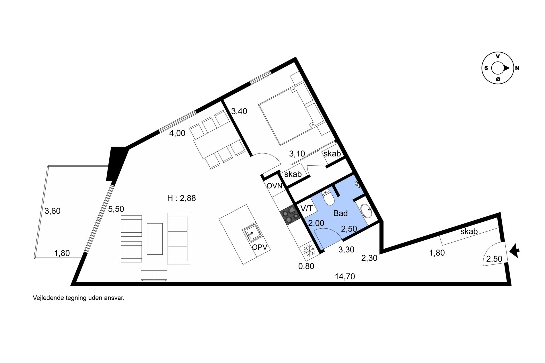Lejligheden indeholder: Rummelige entré. Flot lyst badeværelse med gulvopvarmede klinker samt vaskesøjle. Soveværelse med stor skabsvæg. Lyst køkken/alrum med super flot udsigt til Stjernepladsen, og udgang til sydvendt altan. En eksklusiv beliggenhed i første parket til havnefronten Denne beliggenhed er helt unik, og I bliver en del af den pulserende havnefront med mange forskellige arrangementer om sommeren. Fornøjelser, fornødenheder og forfriskninger byder sig da også til med alt fra Karolinelundparken og Kabelparken til diverse dagligvarebutikker, spisesteder og delikatessebutikker.