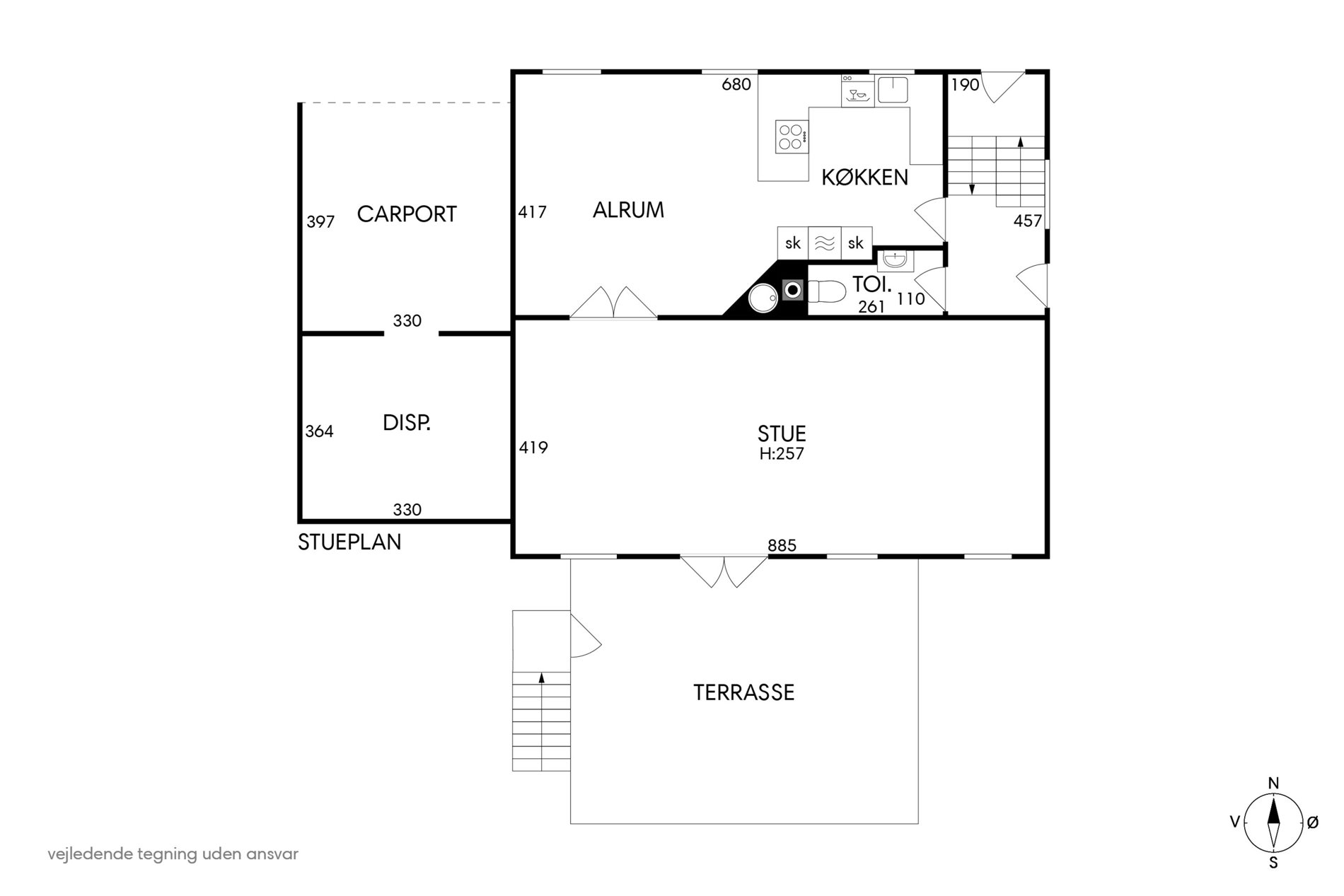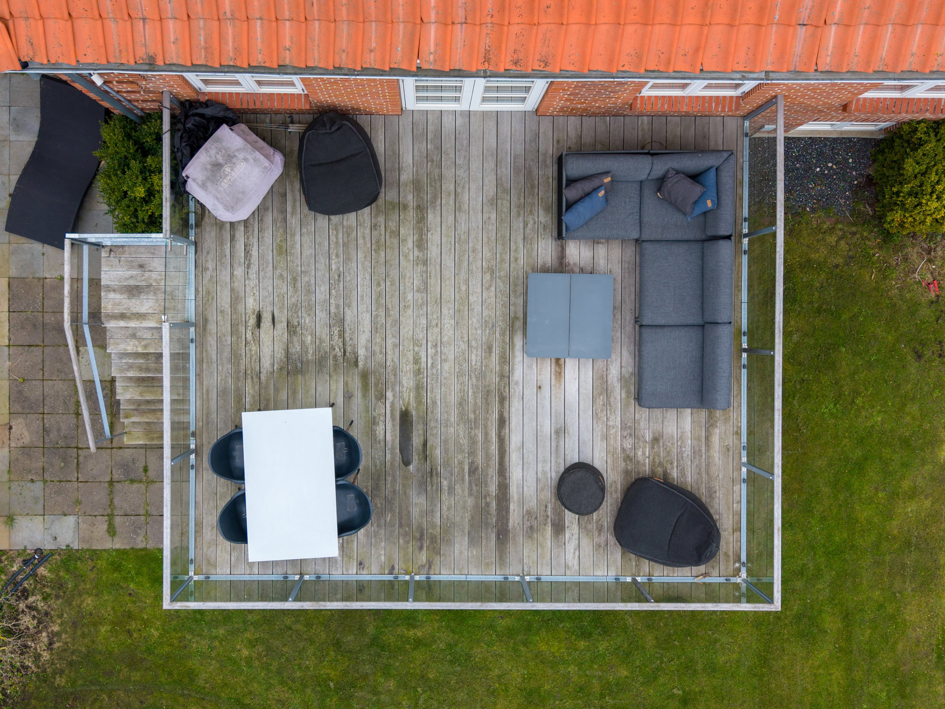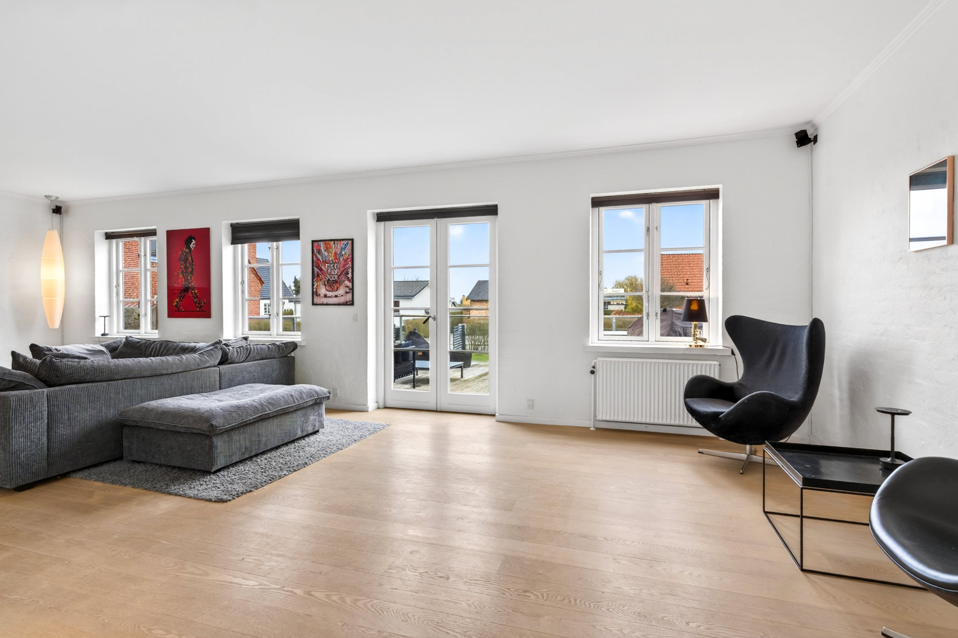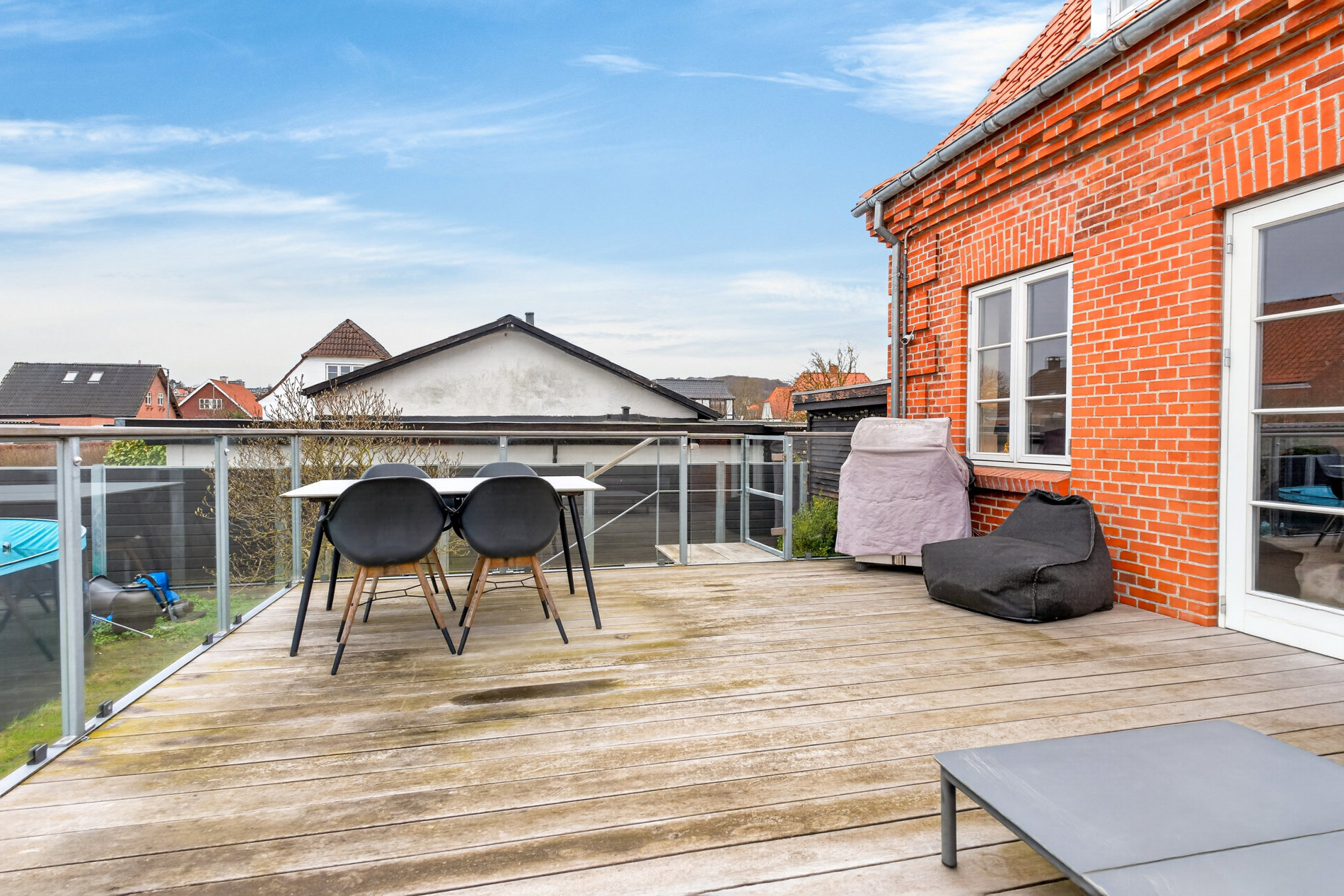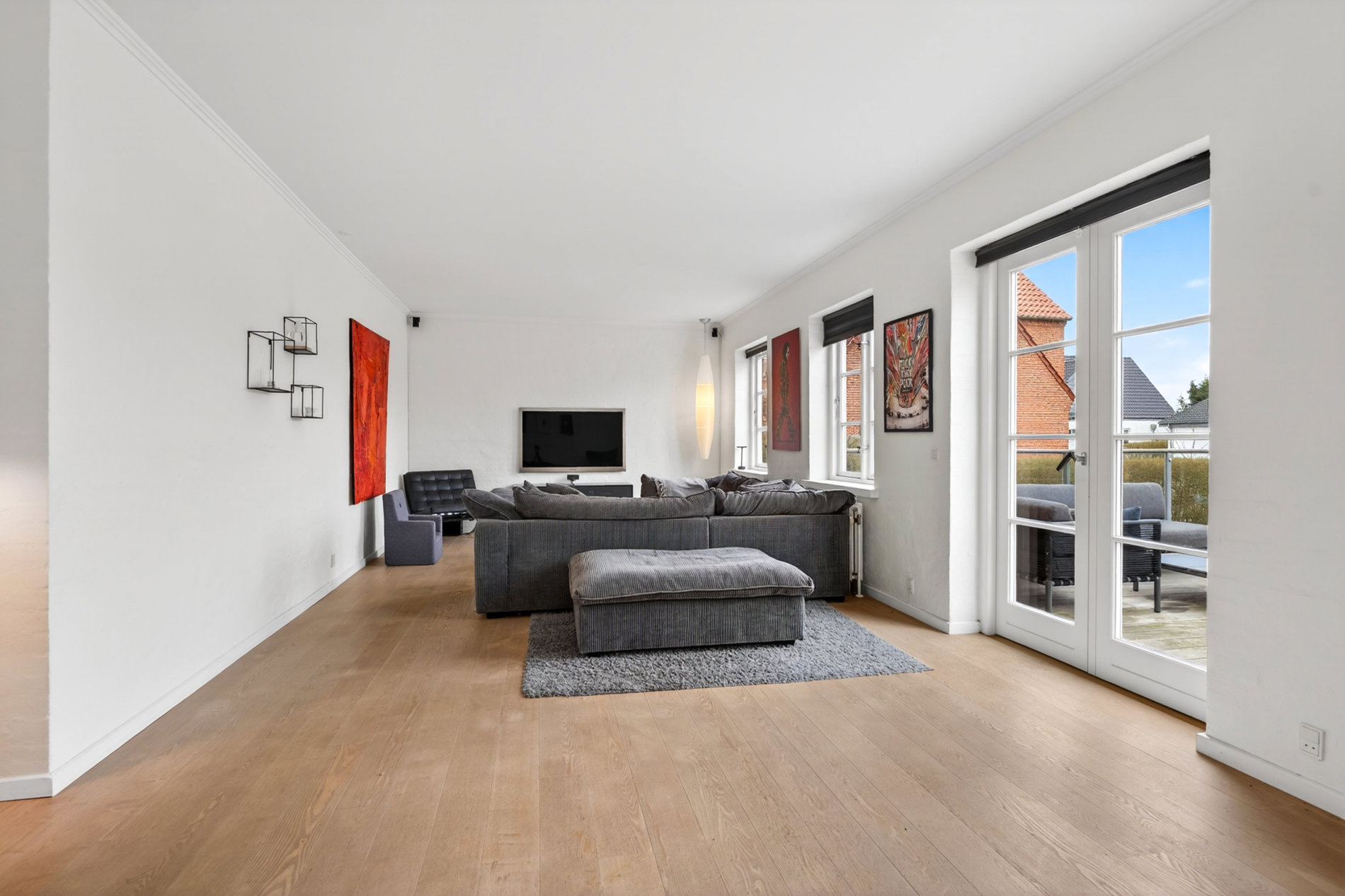 Stuen er stor, dyb og let at indrette med både opholds- og loungemiljø. Herfra er der direkte udgang til en stor, hævet terrasse med nedgang til haven, der er et oplagt sted at nyde solen, udsigten og de lange sommeraftener. Bag huset findes desuden en stor overdækning, der forlænger udesæsonen og skaber en hyggelig ramme om grill, samvær og afslapning.