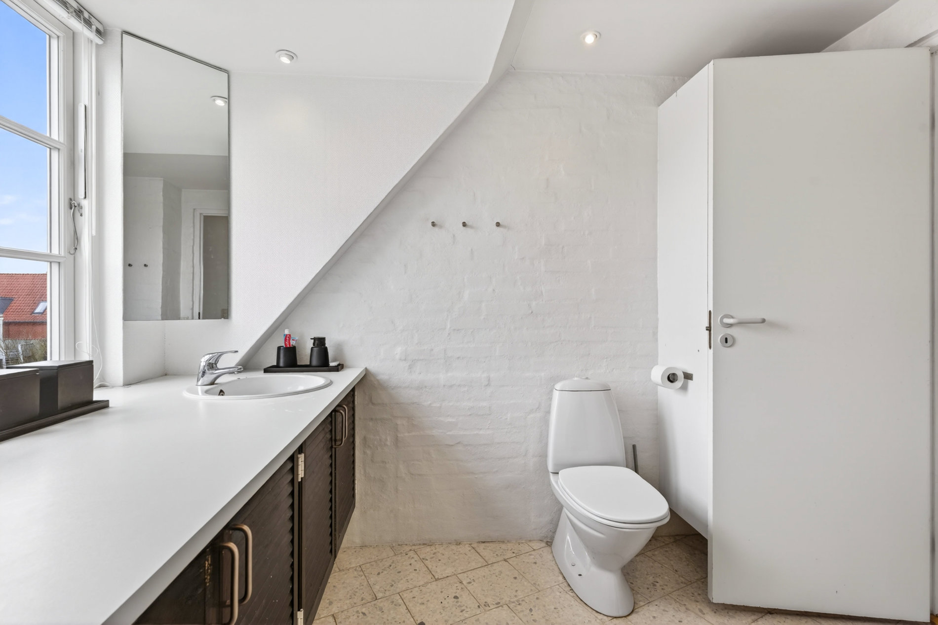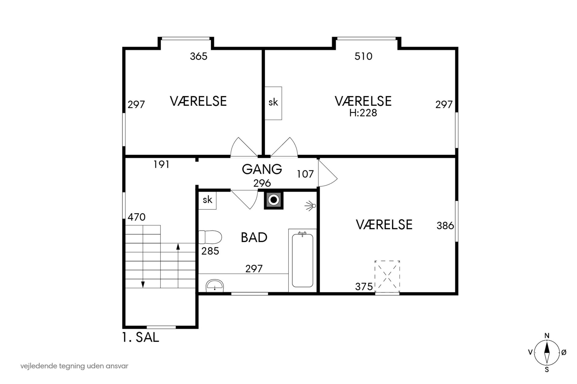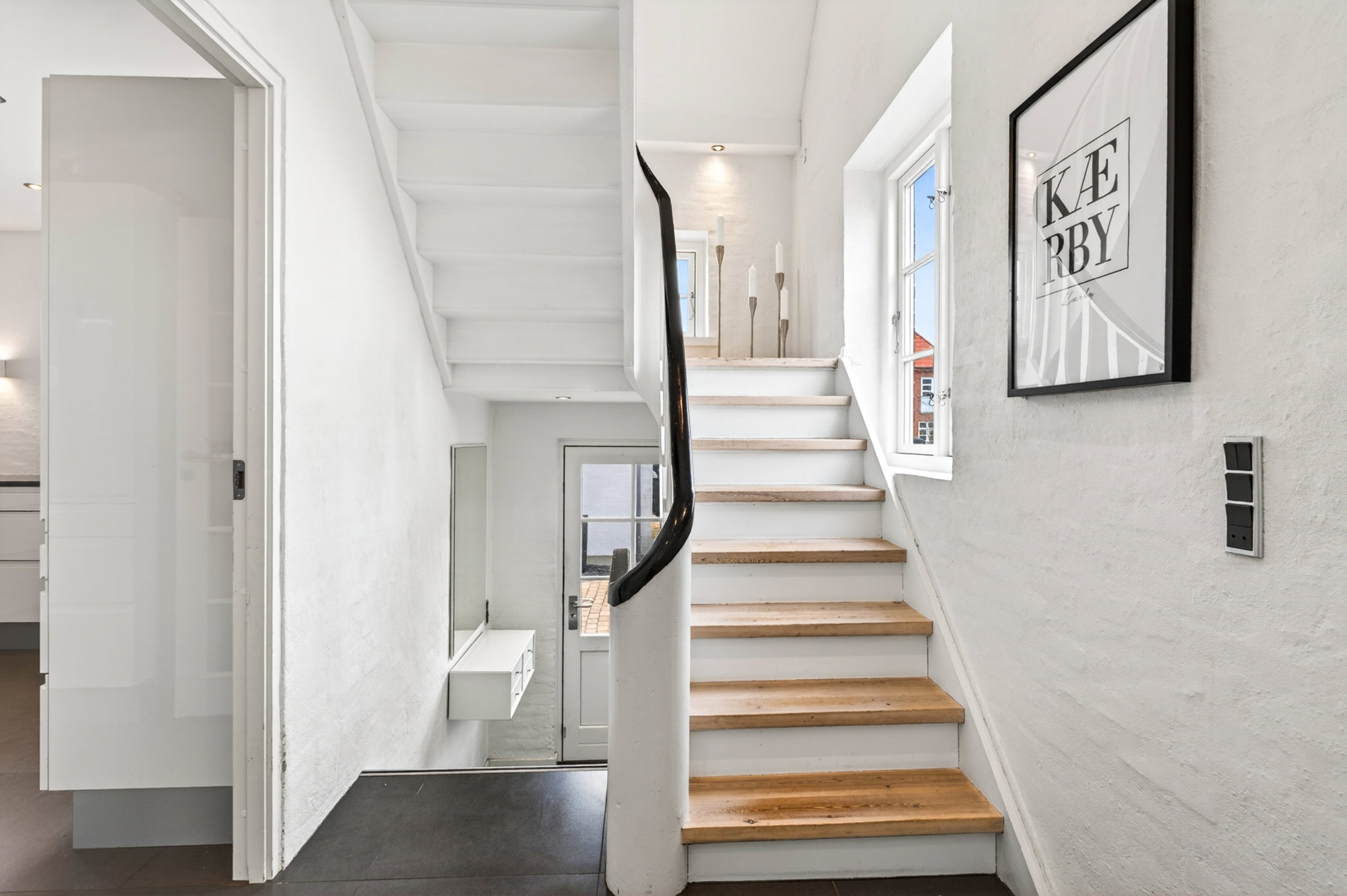 Den restaurerede trappe fører op til førstesalen, hvor planløsningen er ideel til familieliv. Her findes et stort soveværelse, to gode børneværelser samt et stort badeværelse med både karbad og bruseniche. Alle rum fremstår pænt istandsatte og klar til indflytning.