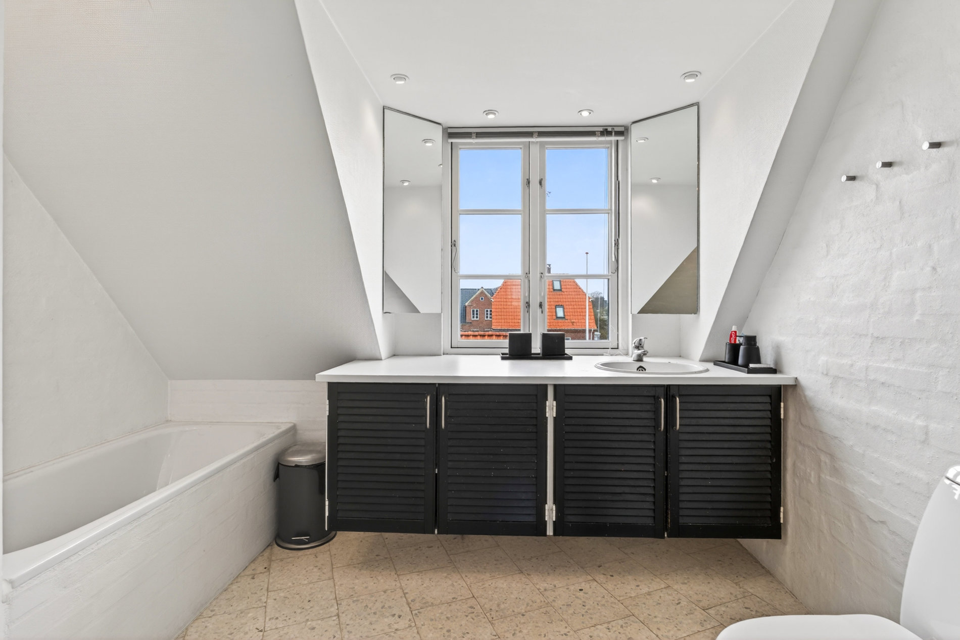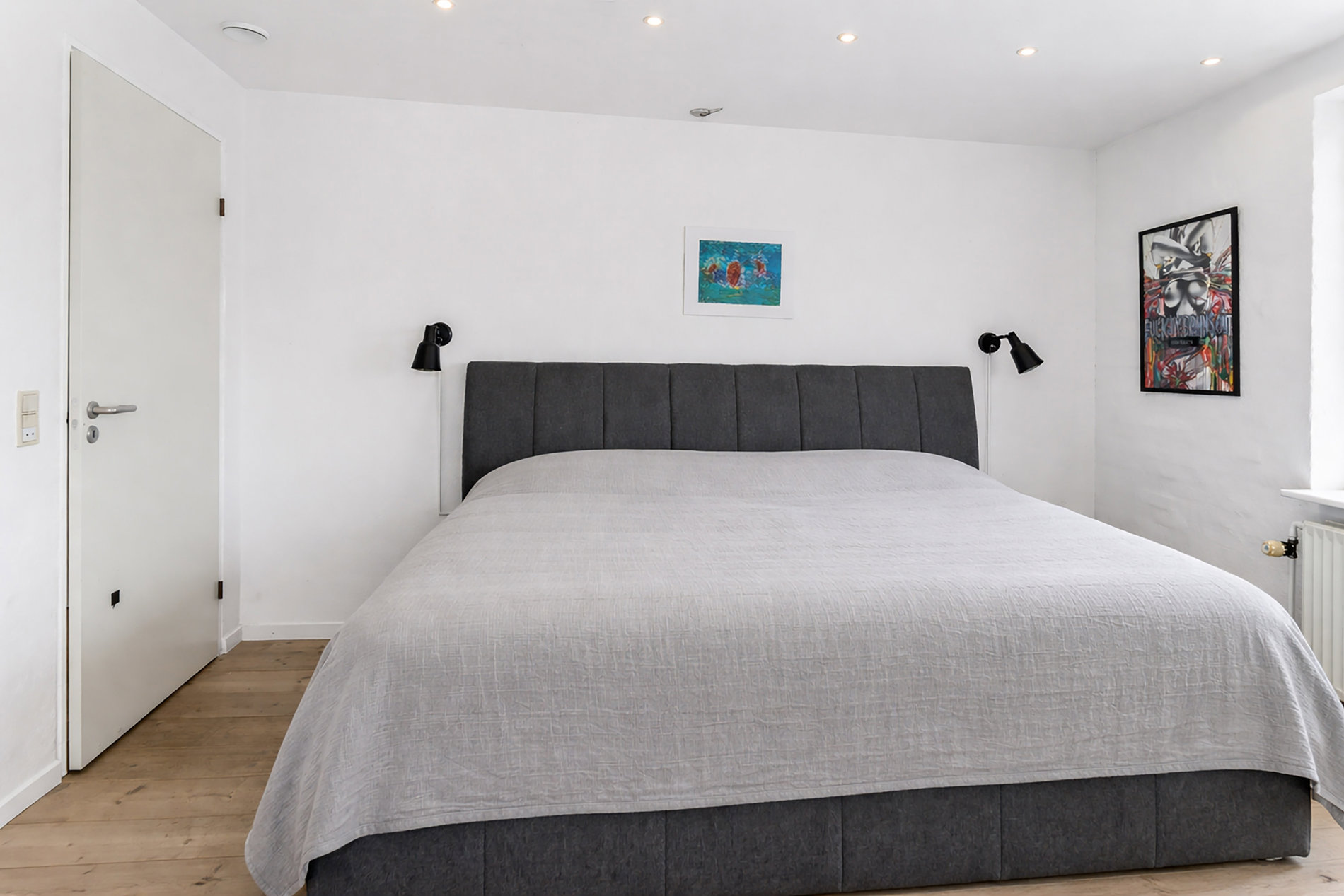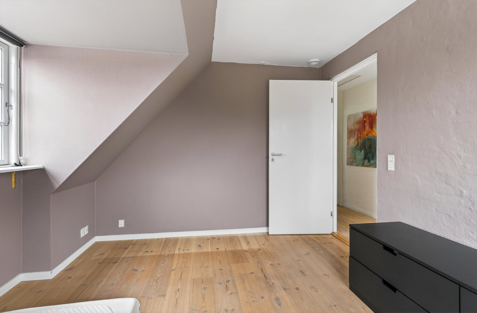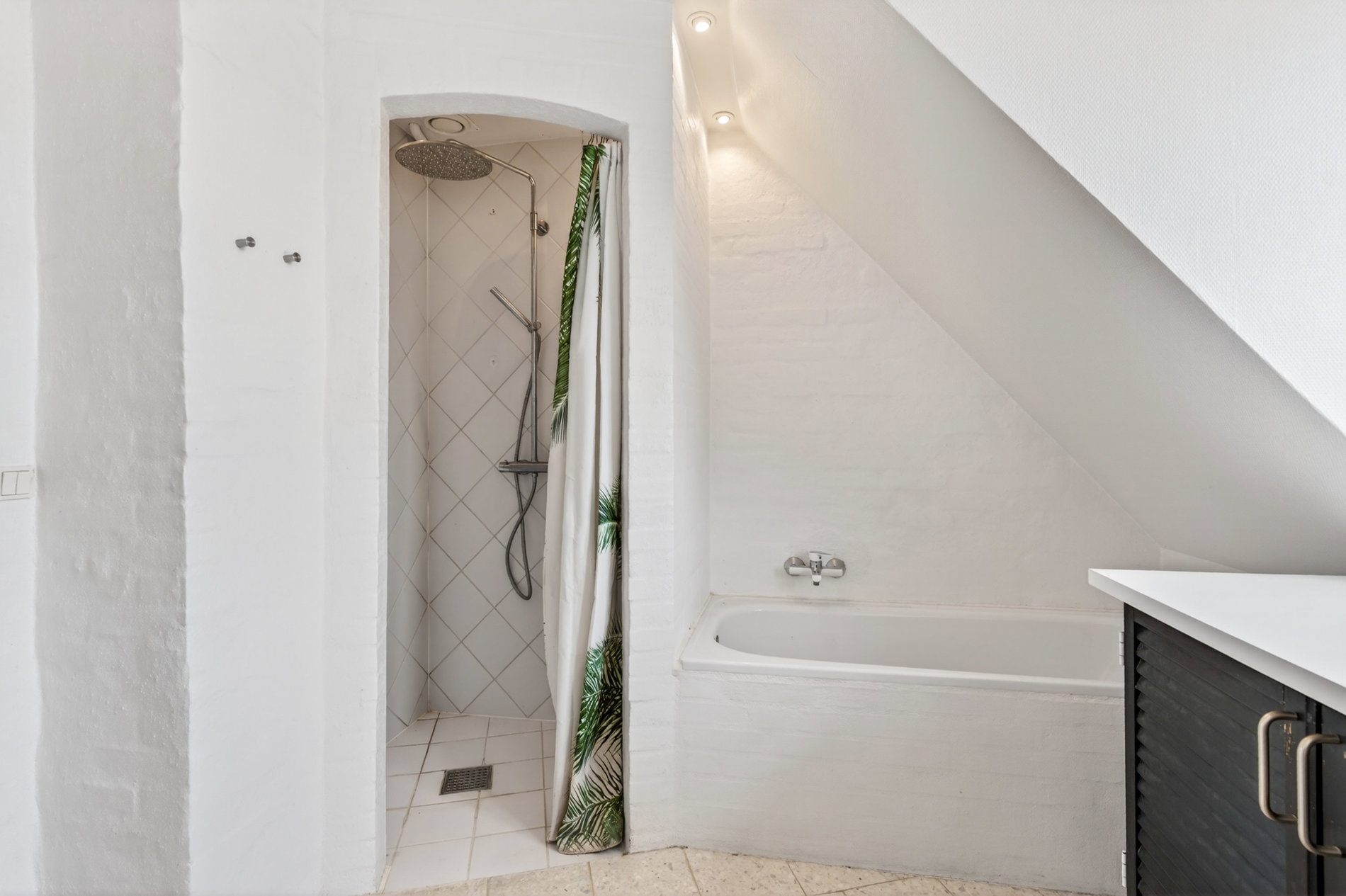 Den restaurerede trappe fører op til førstesalen, hvor planløsningen er ideel til familieliv. Her findes et stort soveværelse, to gode børneværelser samt et stort badeværelse med både karbad og bruseniche. Alle rum fremstår pænt istandsatte og klar til indflytning.
