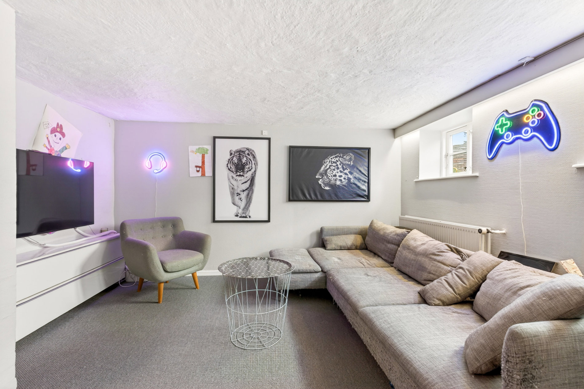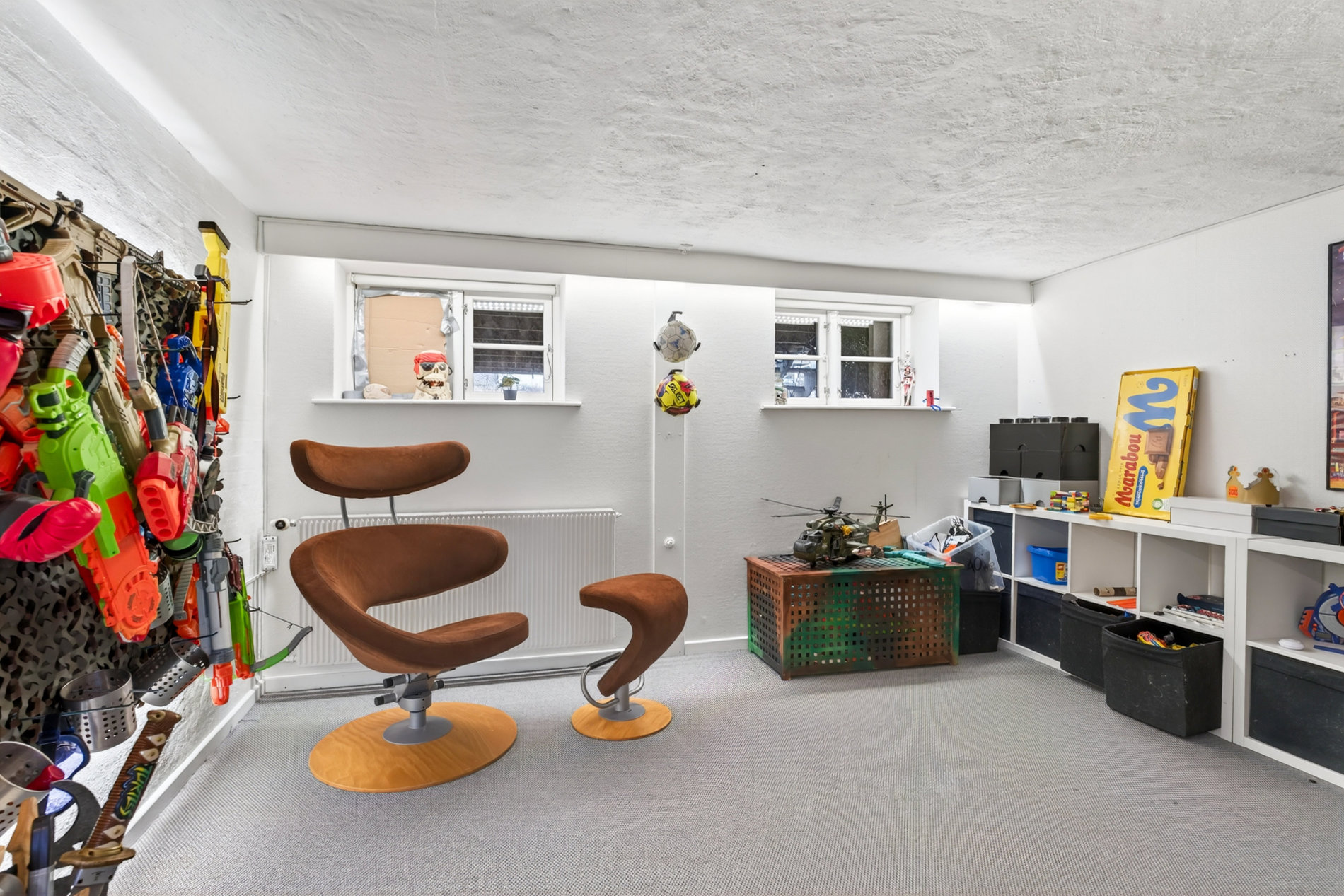 Under huset findes en rigtig stor og indbydende kælder, der giver boligen ekstra funktionalitet. Her er oplagte rammer for hjemmekontor, gamer-rum, legerum eller hobbyaktiviteter. Derudover et praktisk bryggers med vaskesøjle, god bordplads og mulighed for opmagasinering – en sjælden kvalitet i denne type ejendom.