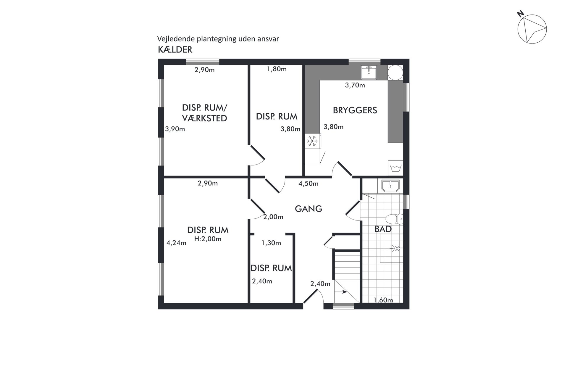 Førstesalen samler hele familien med et badeværelse og fire værelser, så I og småbørn kan sove dør om dør. Slutteligt skal vi runde den høje, tørre kælder med egen indgang, hvor flere disponible rum, et badeværelse og et bryggers kan indrettes som hobbyrum eller måske en teenageafdeling i takt med, at børnene bliver ældre og ønsker deres eget private helle. Ja, huset vokser ikke nødvendigvis i kvadratmeter, men det vokser bestemt i funktion med jer selv og familien.