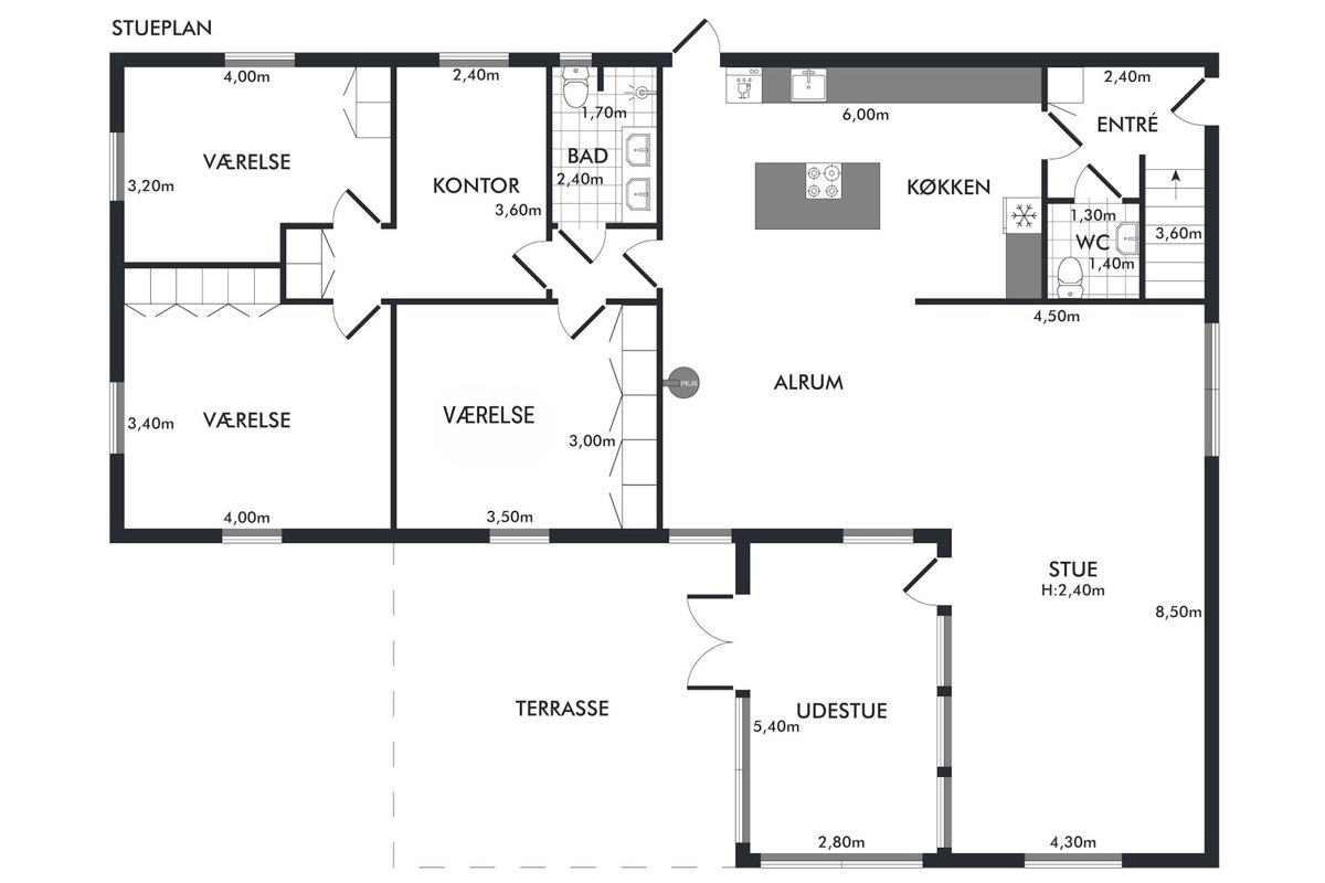 Boligens 157 m² er udnyttet optimalt og rummer alt, hvad familien har brug for i en gennemtænkt indretning. Når du træder indenfor, møder du en rummelig entré med god plads til overtøj og adgang til gæstetoilet. I 2022 blev boligen moderniseret, så det oprindelige køkken nu er integreret med stuen og fremstår som et lyst og indbydende køkken-alrum i åben forbindelse med opholdsstuen. Her får I et rummeligt samlingspunkt for hele familien med god plads til både madlavning, samvær og hyggelige stunder. Opholdsstuen ligger i direkte forlængelse og byder på masser af plads til både afslapning og gæster.