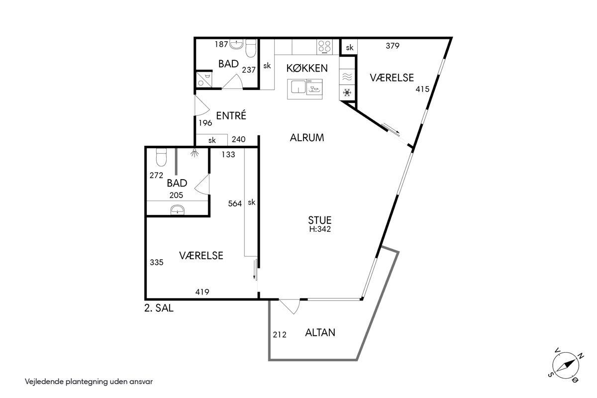 • Sydøstvendt altan med morgen- og formiddagssol