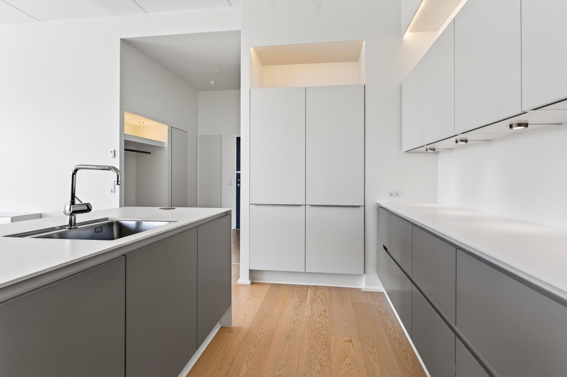 Boligen er præget af en klar helhed i både materialer og indretning. Alrummet fungerer som lejlighedens samlingspunkt, hvor køkkenet står med rene linjer og funktionelle løsninger. De store vinduespartier binder rummene sammen med omgivelserne og skaber en let og åben atmosfære. Dertil kommer et harmonisk badeværelse og en velafbalanceret rumfordeling i denne 3 værelses lejlighed, der giver både plads og privatliv.