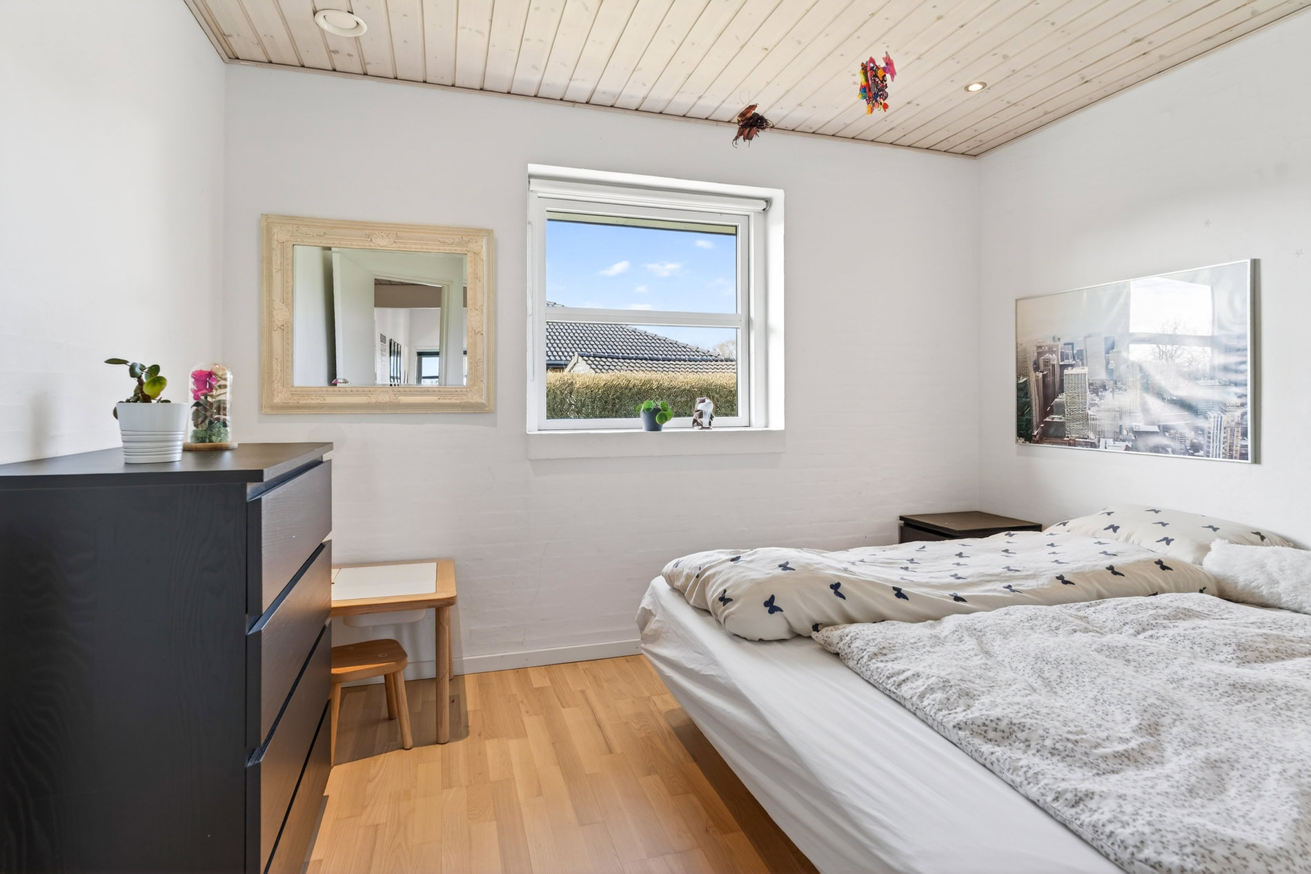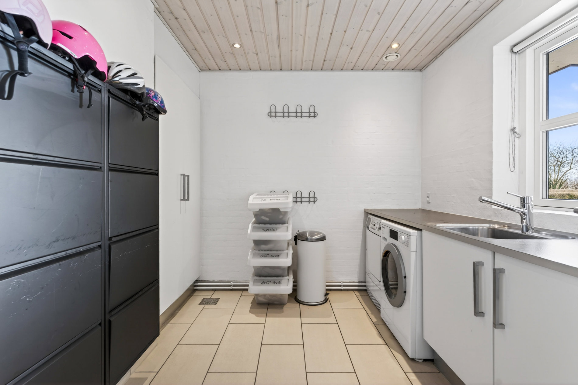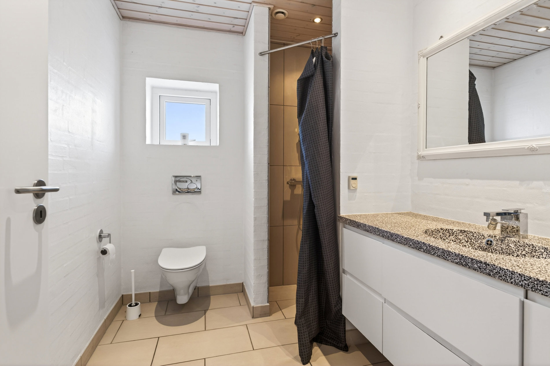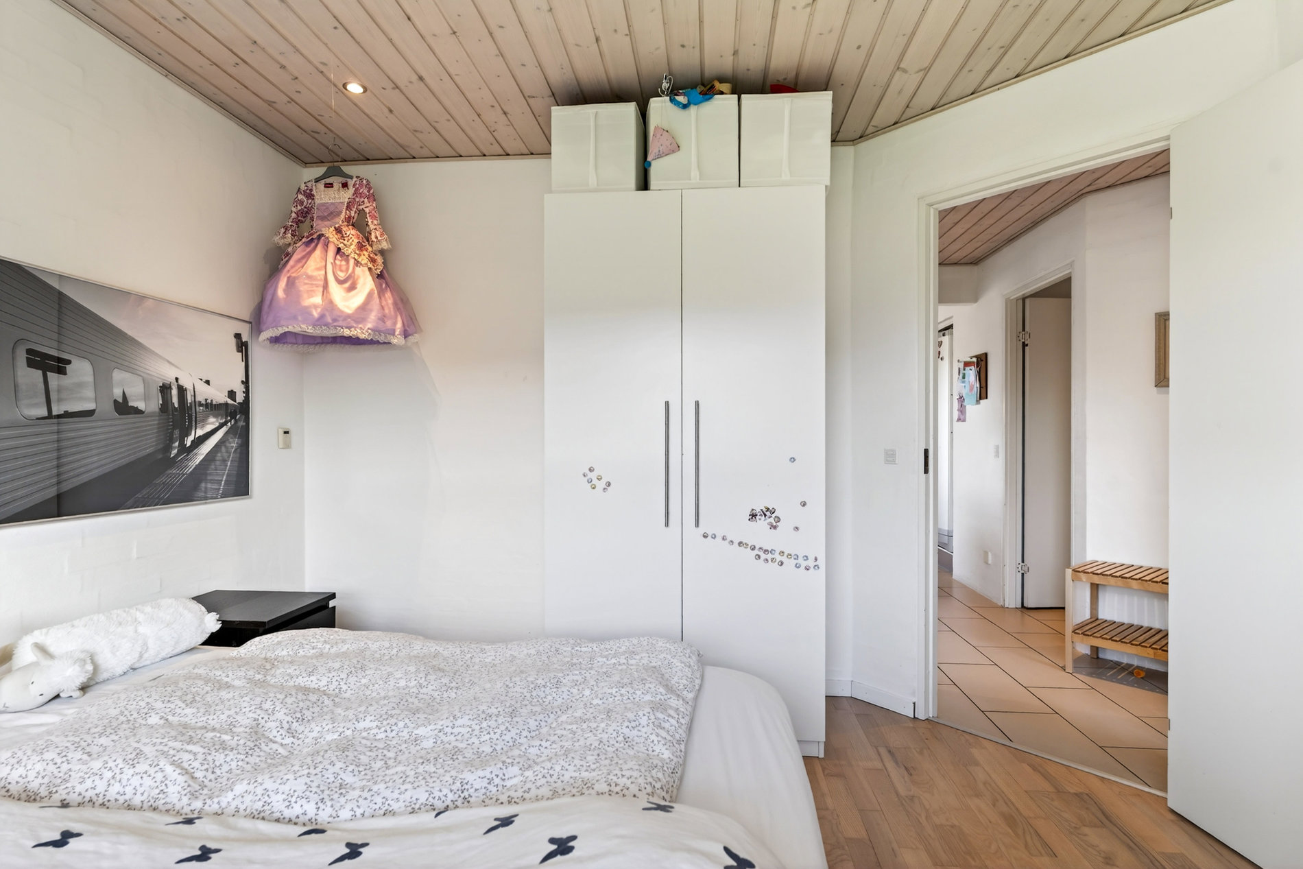 Planløsningen er ideel til familien, der ønsker både fællesskab og privatliv. Voksenafdelingen ligger afskærmet og byder på et stort soveværelse med direkte udgang til haven samt eget badeværelse med hjørnebadekar og spa, som du har adgang til via soveværelset. I modsatte ende af huset finder du tre store værelser, hvoraf ét i dag anvendes som kontor, samt endnu et pænt badeværelse med bruseniche. Alle værelser har gode opbevaringsløsninger, og bryggerset fremstår særdeles funktionelt med langt bord, skabe og god plads til hverdagens praktiske gøremål.