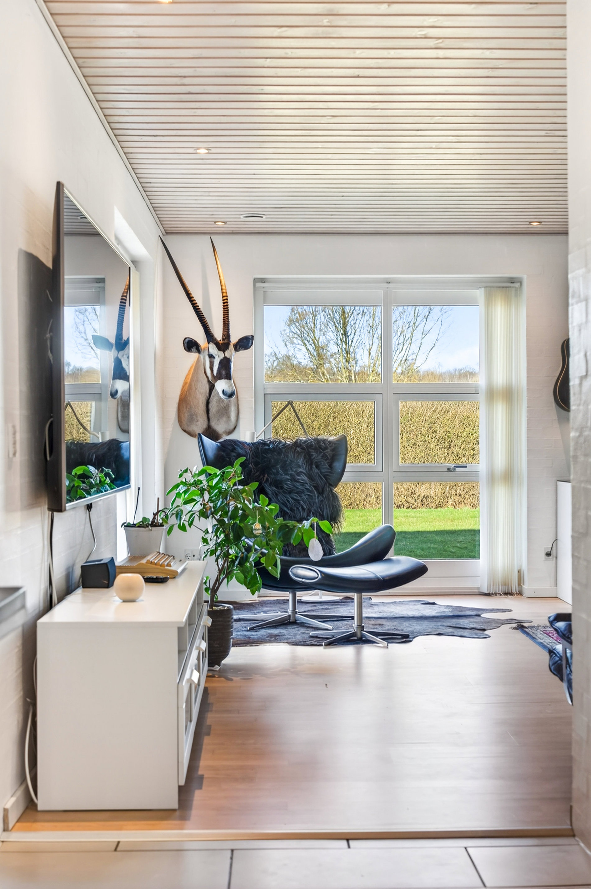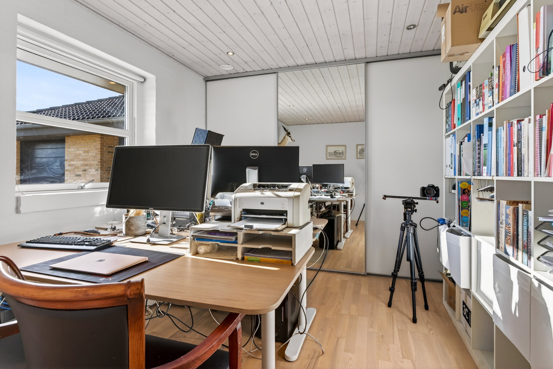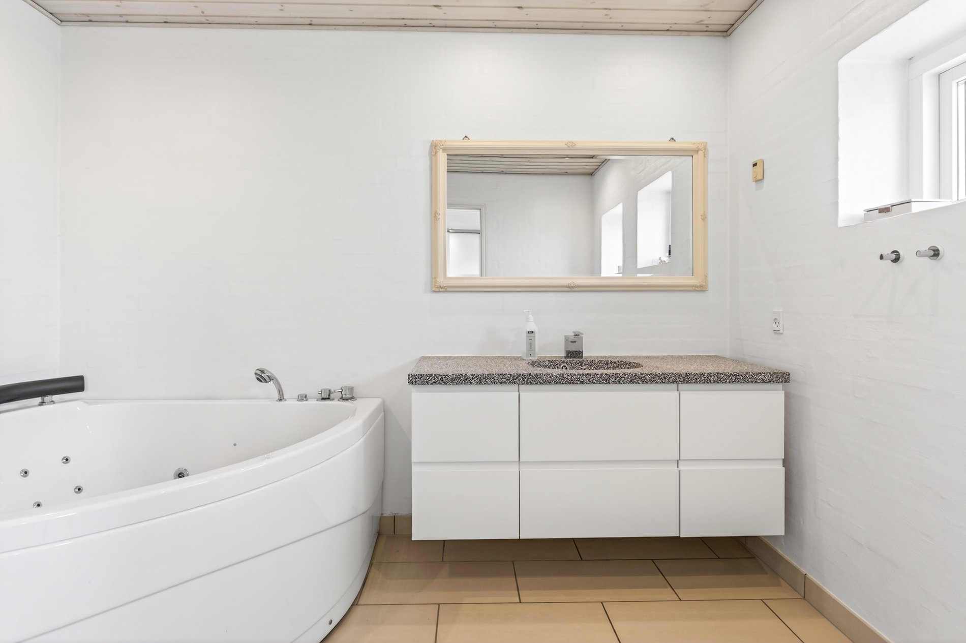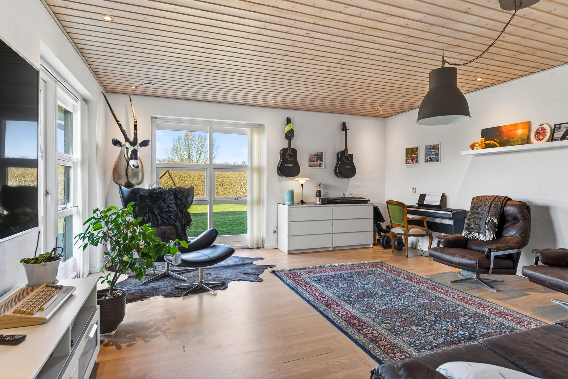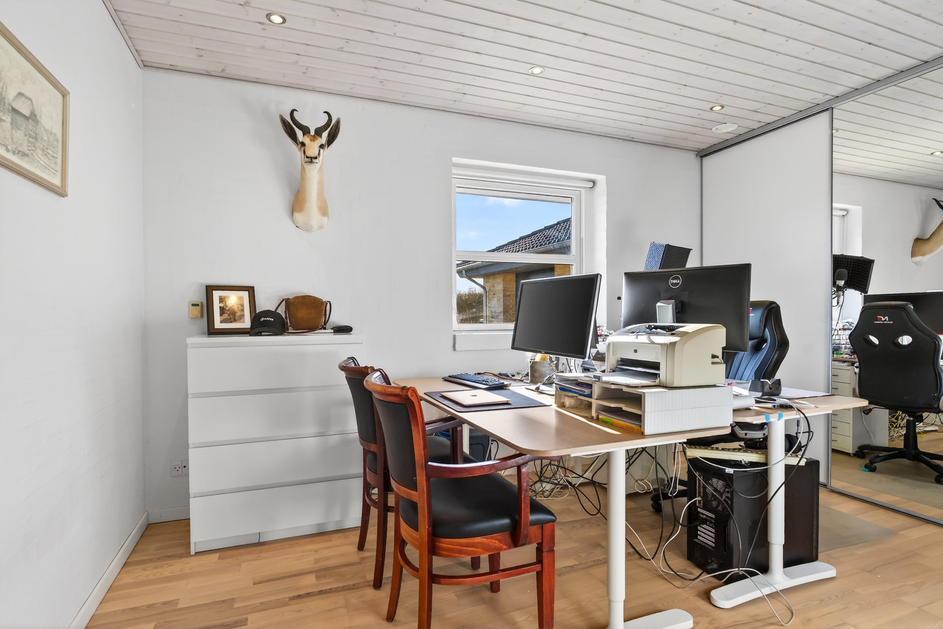 Planløsningen er ideel til familien, der ønsker både fællesskab og privatliv. Voksenafdelingen ligger afskærmet og byder på et stort soveværelse med direkte udgang til haven samt eget badeværelse med hjørnebadekar og spa, som du har adgang til via soveværelset. I modsatte ende af huset finder du tre store værelser, hvoraf ét i dag anvendes som kontor, samt endnu et pænt badeværelse med bruseniche. Alle værelser har gode opbevaringsløsninger, og bryggerset fremstår særdeles funktionelt med langt bord, skabe og god plads til hverdagens praktiske gøremål.