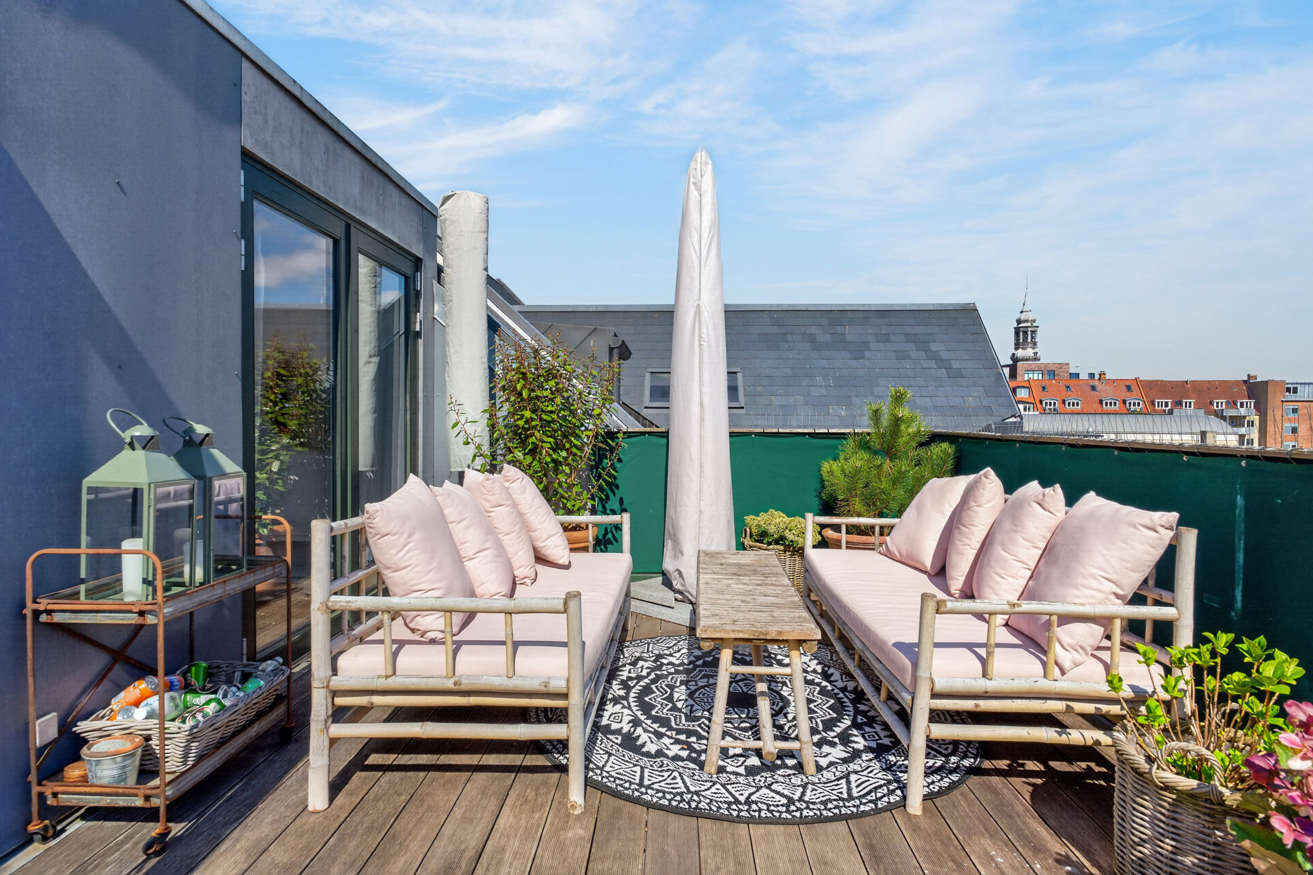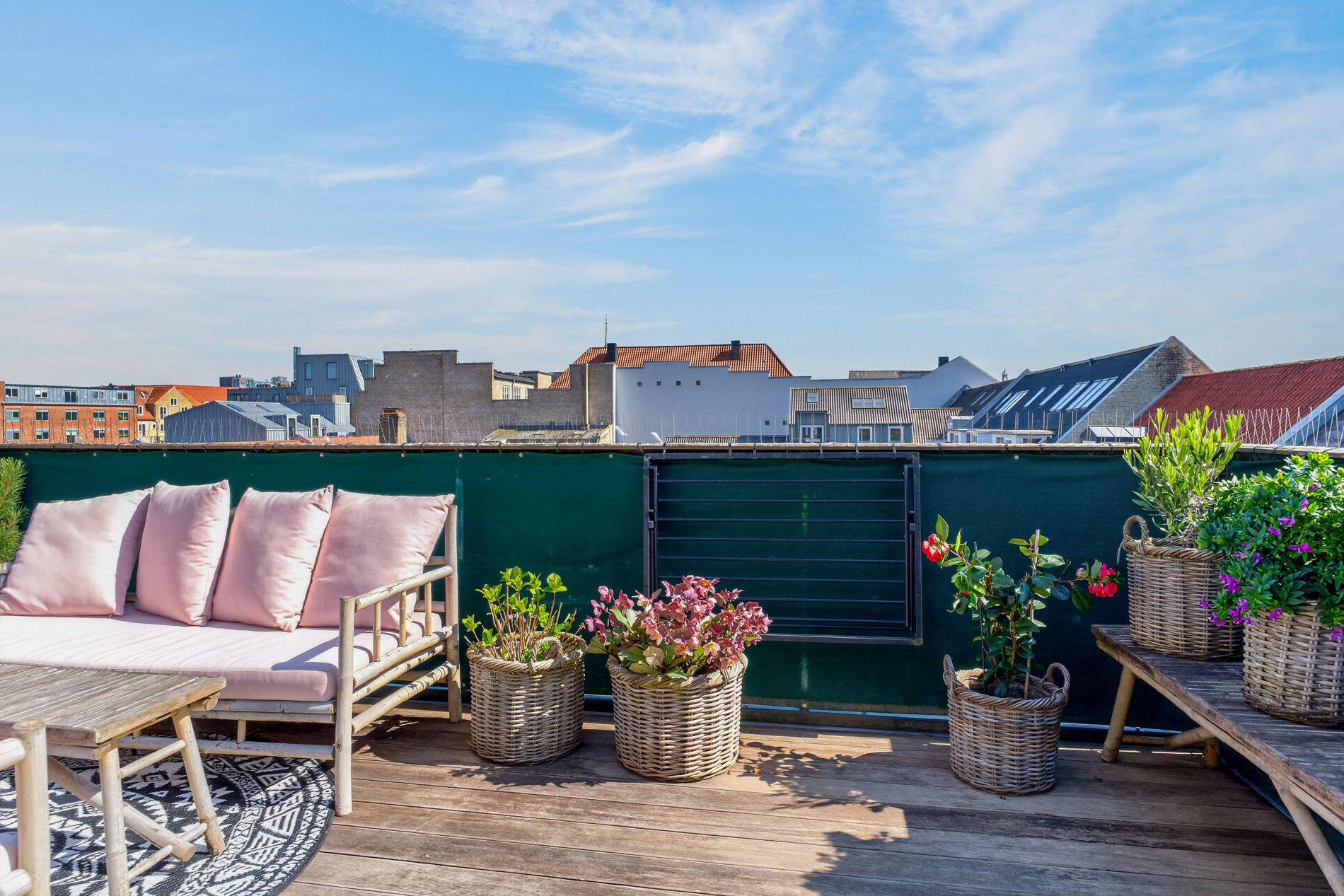 Den store tagterrasse er noget helt særligt. Herfra åbner byen sig i et imponerende panorama, hvor blikket fanges af Aalborgs tage, Budolfikirkens flotte tårn og Salling Rooftop i horisonten. Terrassen indbyder til alt fra stille morgenkaffe til lange sommeraftener med venner og familie, hvor byen altid danner et levende bagtæppe. En sjælden luksus midt i centrum.