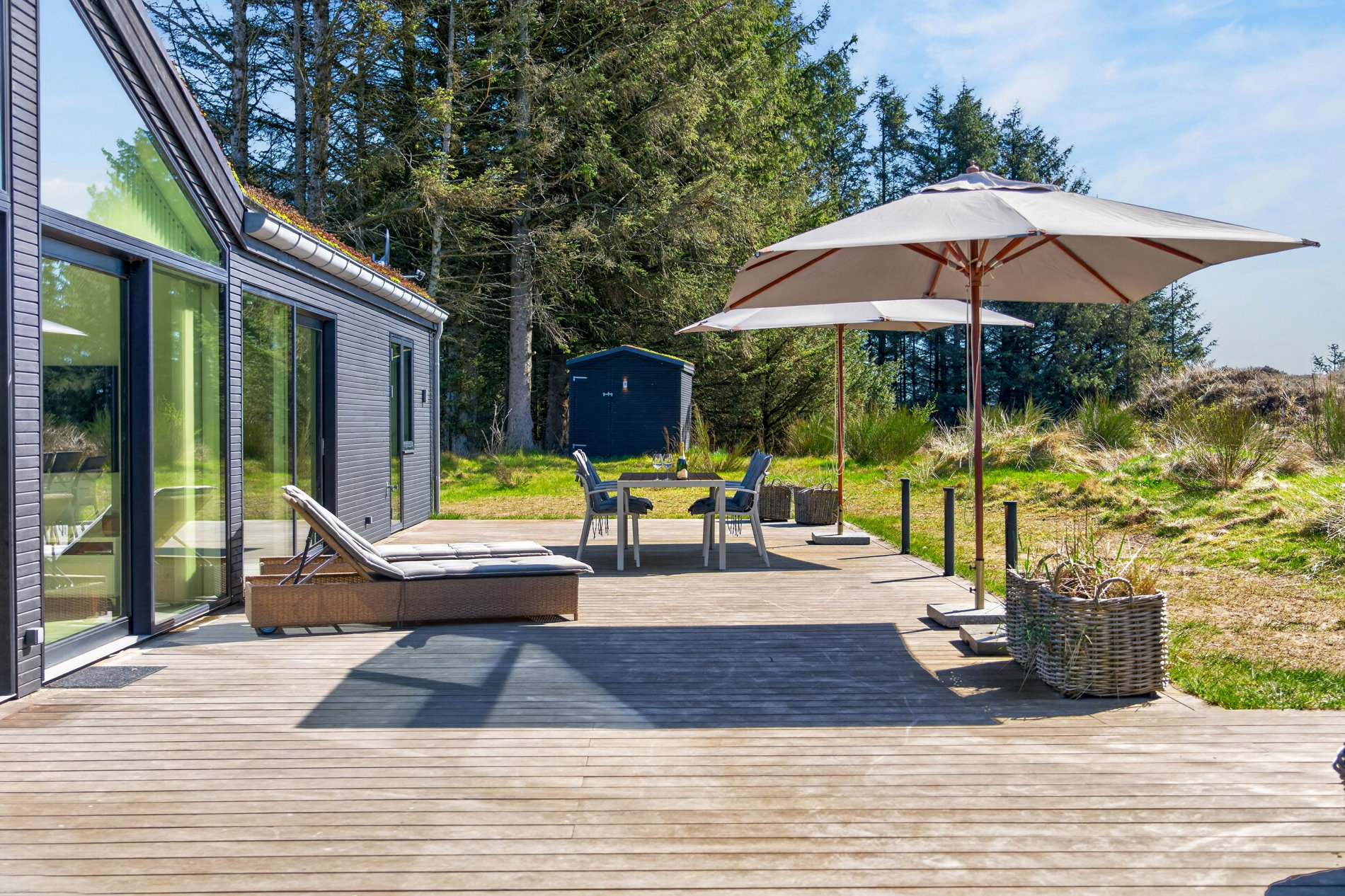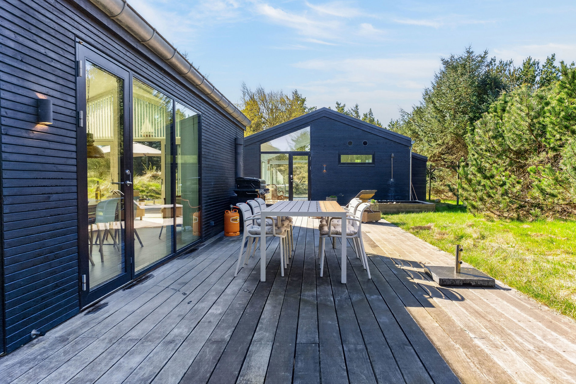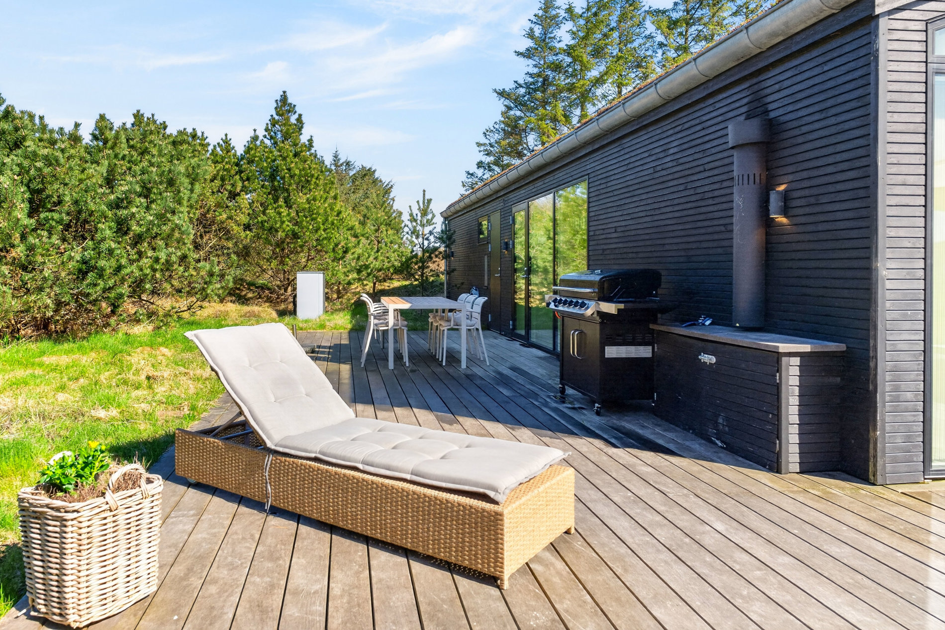 · Stor terrasse, udendørs bruser, grill og havemøbler