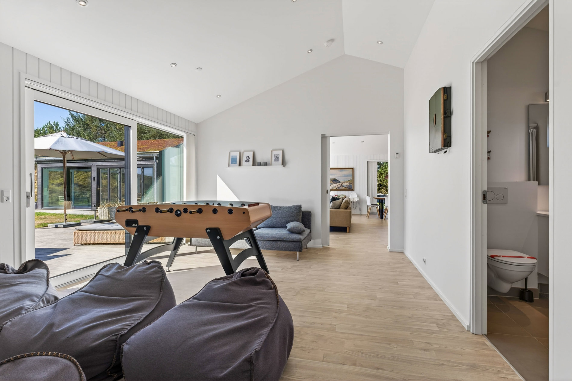 · Stor, solrig terrasse med udendørs bruser og flere opholdszoner